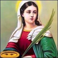 Santa Luzia vendeu tudo, deu aos pobres, e logo foi acusada pelo jovem que a queria como esposa. Não querendo oferecer sacrifício aos falsos deuses nem quebrar o seu santo voto, ela teve que enfrentar as autoridades perseguidoras. Quis o prefeito da cidade, Pascásio, levar à desonra a virgem cristã, mas não houve força humana que a pudesse arrastar. Firme como um monte de granito, várias juntas de bois não foram capazes de a levar (Santa Luzia é muitas vezes representada com os sobreditos bois). As chamas do fogo também se mostravam impotentes diante dela, até que por fim a espada acabou com vida tão preciosa. A decapitação de Santa Luzia se deu no ano de 303. Conta-se que antes de sua morte teriam arrancado os seus olhos, fato ou não, Santa Luzia é reconhecida pela vida que levou Jesus – Luz do Mundo – até as últimas consequências, pois assim testemunhou diante dos acusadores: “Adoro a um só Deus verdadeiro, e a Ele prometi amor e fidelidade”.